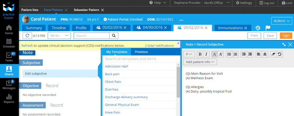 Patient responses will populate directly in the encounter note for the appointment, and will also be able to be reviewed in the patient Timeline. You’ll receive a notification a patient has completed your form in the Tasks section of your EHR.