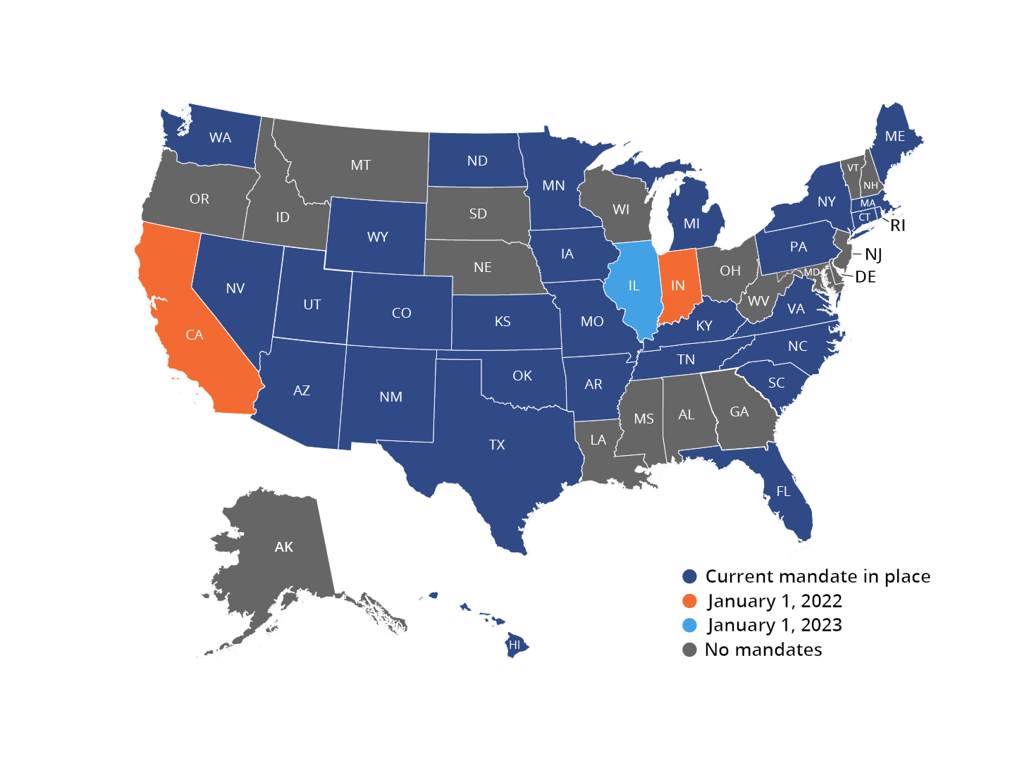 Individual states’ mandates may differ in the specific schedules of controlled substances that must be electronically prescribed. Some states require all prescriptions to be electronically prescribed, including both controlled and non-controlled substances.8 To ensure compliance, it is essential for prescribers to confirm the details of their specific states’ EPCS requirements. For more information on the details of each state’s EPCS mandate status, please refer to the individual state links below.