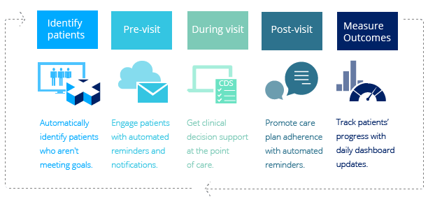 - Automated patient communication tools to help you engage at-risk patients when they are outside of your office.
